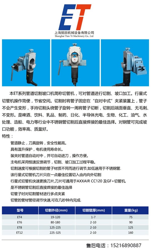 Company introduction :YITIAN Mechanical Equipment CO.,ltd. found in APR 2016, is proud to produce the most popular orbital pipe cutters, steel pipe cutting machine in China.The company ha strong economic strength and ability of new product development, manufacture, design.And the productions are exported to Europe,North America,Southeast Asia,Middle Asia,Russia and so on.We insist on the theory that quality first and the users are supreme.At the same time, we notice the connect with customers, carefully listen to the customers' suggestion and attend on customers' need, we offer high quality machines with reasonable prices and service satisfactory,Welcome to ask.