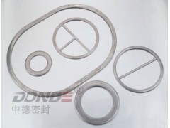 金屬包覆墊片 金屬包覆墊片是以非金屬材料為芯材,外部用特定的冷作工藝包覆0.25-0.5mm的金屬薄板組成的一種復(fù)合型墊片,按墊片截面通常分為平面型包覆及波紋型包覆兩種,是最傳統(tǒng)的一種密合墊片,金屬薄板可根據(jù)材料的的彈塑性,耐熱性和耐腐蝕性選取,主要有黃銅、鋁、軟鐵、不銹鋼、蒙乃爾合金、鈦等,非石棉芯材一般有石棉橡膠板、非石棉板、聚四氟乙烯板、石墨復(fù)合板、陶瓷纖維板等。根據(jù)不同材料可以組合成304不銹鋼包石棉包覆墊片,不銹鋼包石墨包覆墊片等多種形式。 金屬包覆墊片性能特點(diǎn): 1.具有與包覆金屬相同的耐腐蝕性能和相近的耐熱性, 2.非金屬柔性填充材料使墊片能在較低的壓緊力下達(dá)到較好的密封效果。 3.能制成各種形式的異形墊片,例如橢圓形、方形帶筋形或更復(fù)雜的形狀以滿足各種熱交換器管箱和非圓形壓力容器密封的需要。 4.與非金屬軟墊片相比,金屬包覆墊片在經(jīng)常拆卸的 條件下不易損壞、不沾、不腐蝕法蘭密封面,而且具有較高的強(qiáng)度。 金屬包覆墊片應(yīng)用范圍:適用于中高低溫,中高壓直徑較大的壓力容器(如換熱器、反應(yīng)器等),管線法蘭的密封和各種介質(zhì)的機(jī)泵、管閥、管道及各類設(shè)備的法蘭密封。