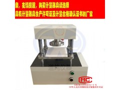 3、將切刀放在工作臺(tái)上的試樣上,使切刀刃平面與機(jī)座平臺(tái)平行,并目測對準(zhǔn)機(jī)器的壓盤;